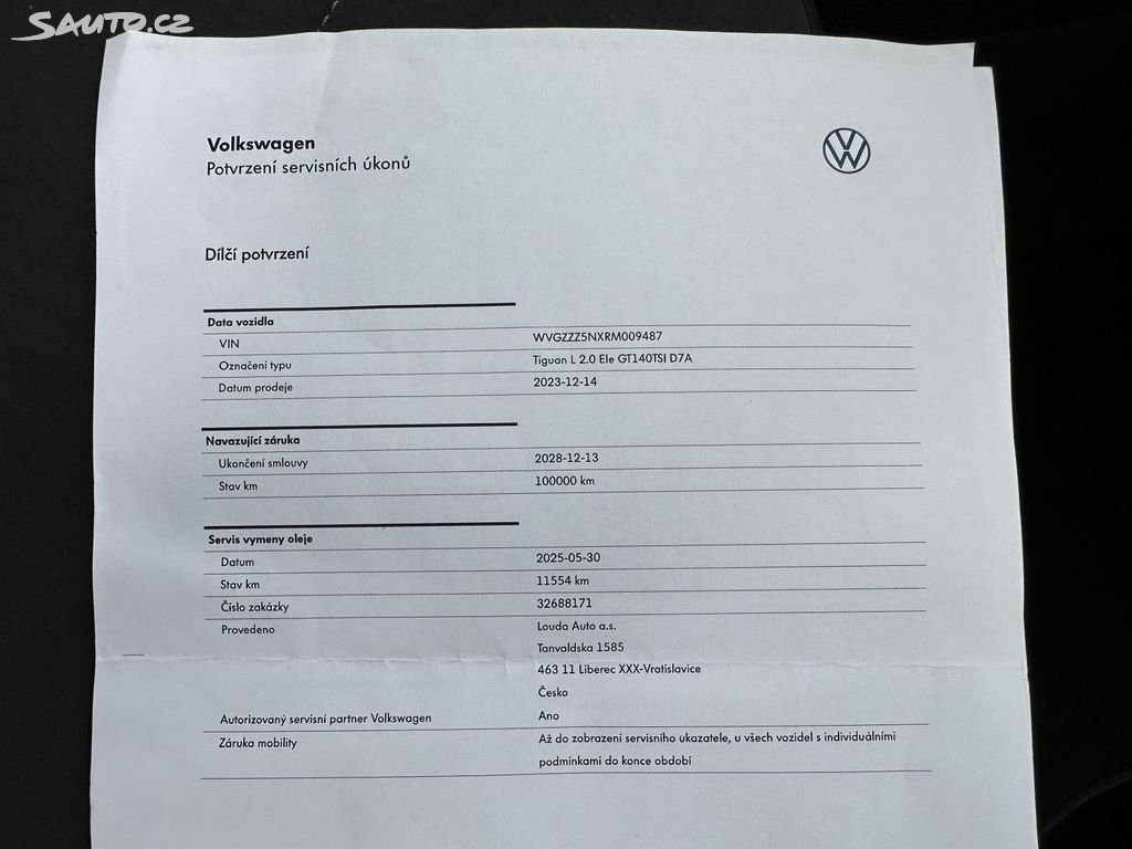 Možnost odpočtu DPH! Krásný zánovní automobil po 1.majiteli v ČR, se zárukou od výrobce do 12/2027/ 100tis.km předplacený servis 5.let/60.tis.km, ověřené kilometry, elektronická servisní kniha, pravidelný servis po celou dobu u autorizovaného dealera VW, poslední servis 05/2025 na 11.tis.km výměna oleje včetně filtrů, originál tažné zařízení na 2500kg, k vozu kompletní sada zánovních zimních pneu, Velmi krásný stav i vzhled bez kosmetických vad, nyní bez dalších investic