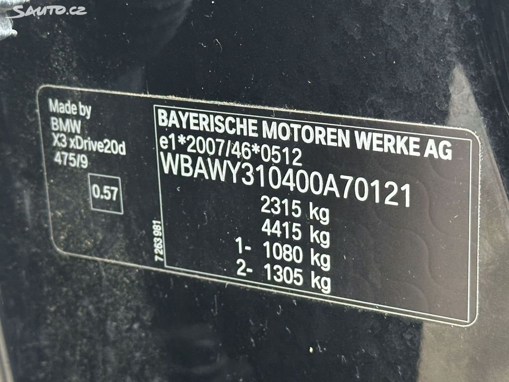 ModelBMW X3Typ2,0d 135kW x-Drive AT SERVISKA