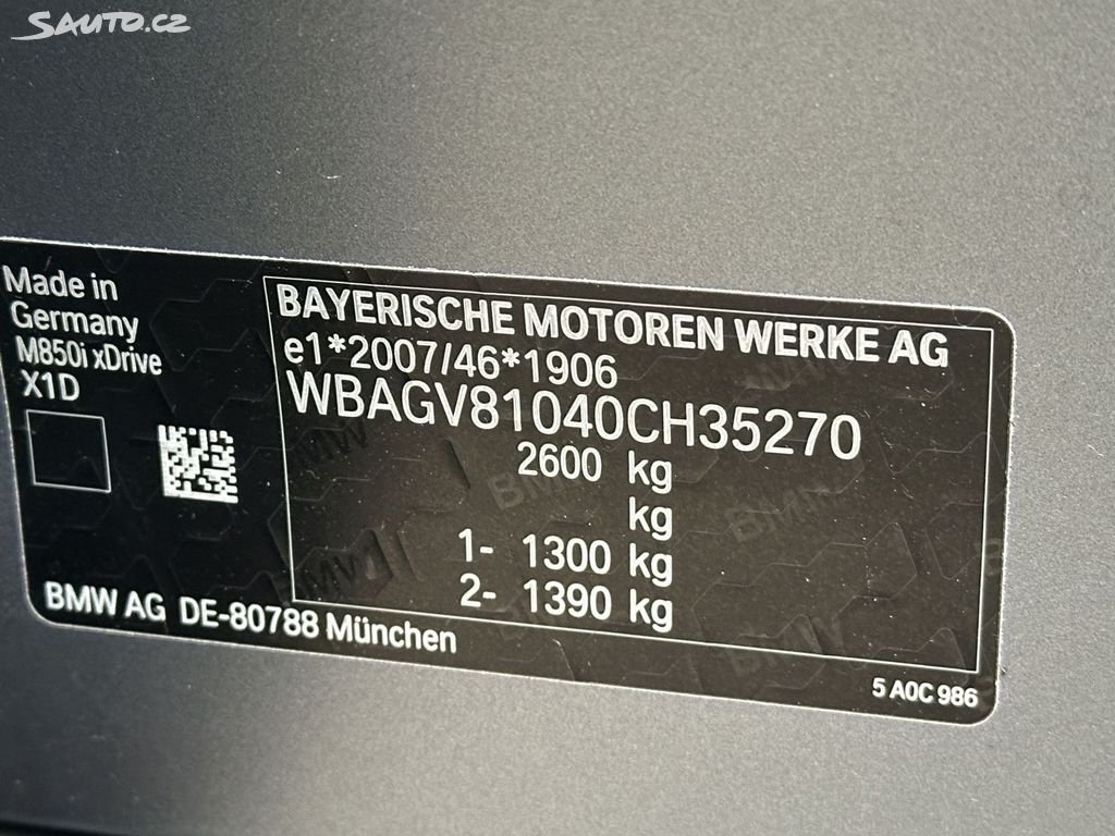 ModelBMW Řada 8TypM850i 390kW X-Drive M-Packet