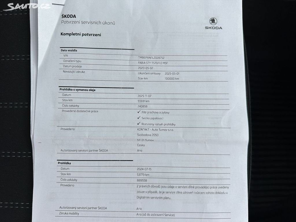 Servisní knihaanoPůvod vozidlaCR