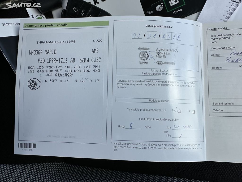 ModelŠkoda RapidTyp1,2TSI 66kW 2.MAJITEL SERVISKA