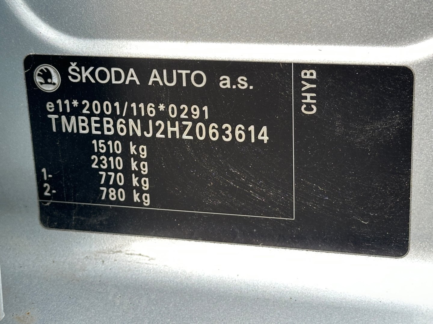 VINTMBEB6NJ2HZ063614 Prověřit vůz