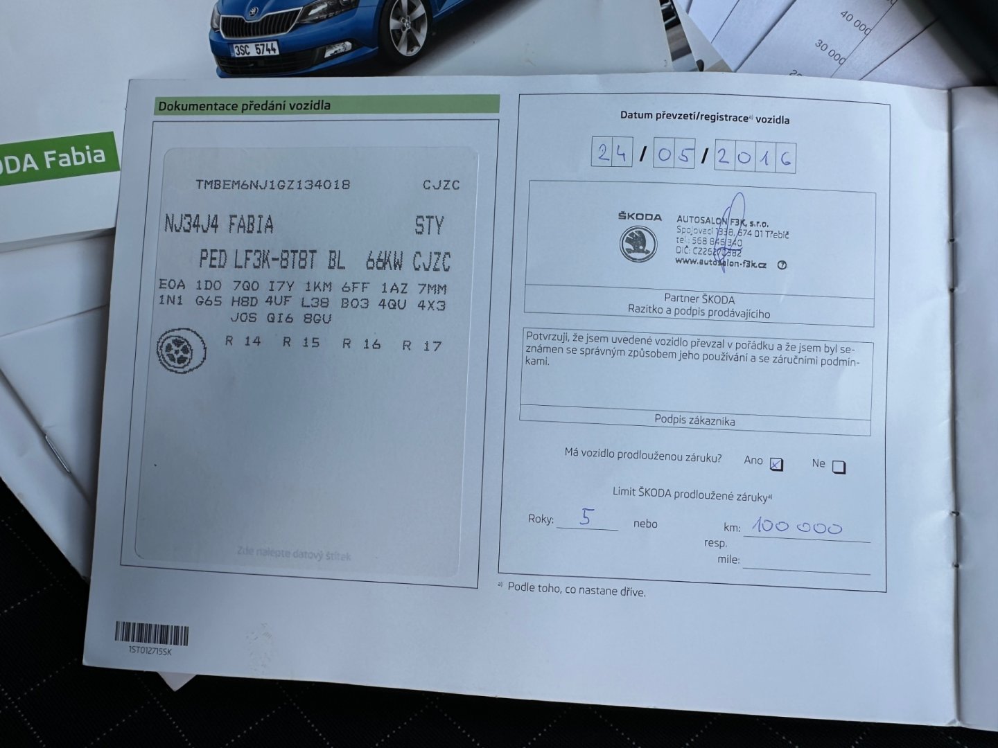 Servisní knihaanoPůvod vozidlaCR