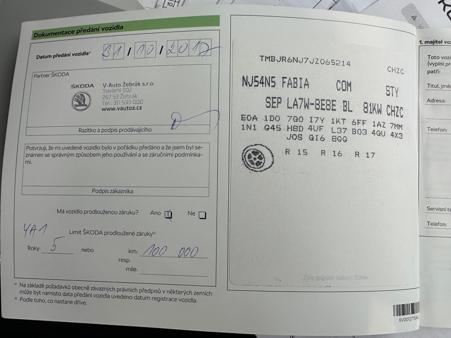 Servisní knihaanoPůvod vozidlaCR