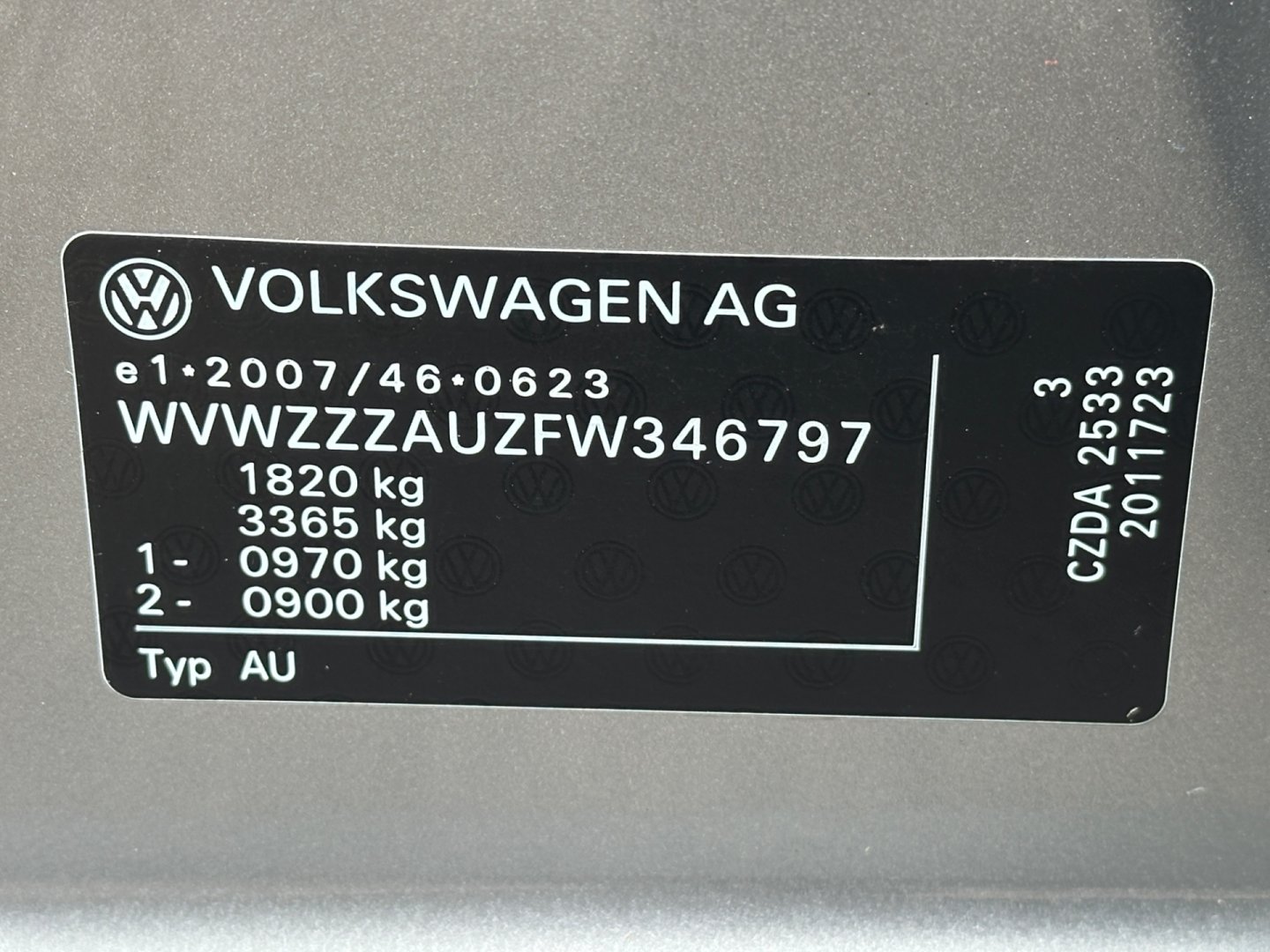 VINWVWZZZAUZFW346797 Prověřit vůz