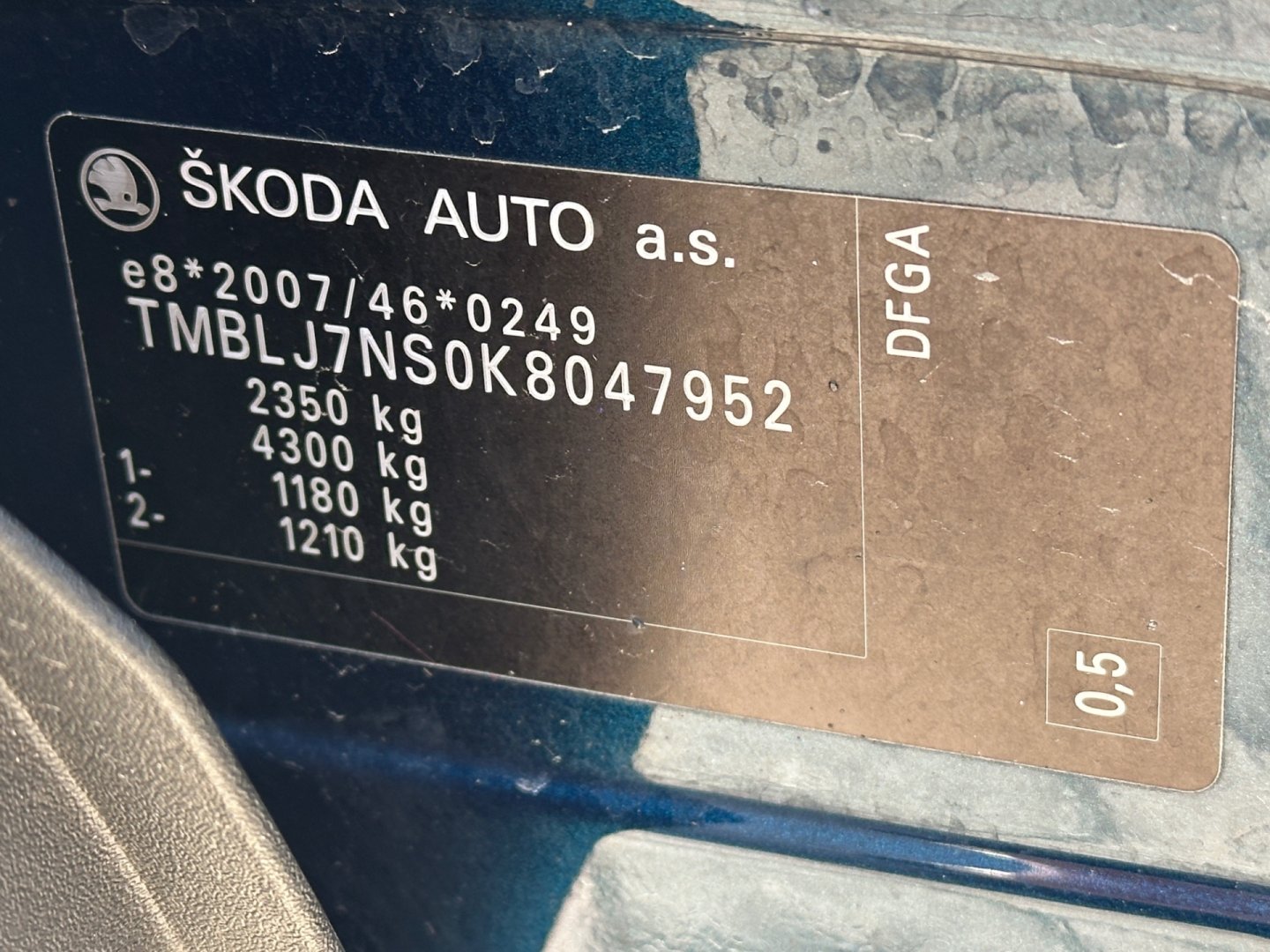 VINTMBLJ7NS0K8047952 Prověřit vůz