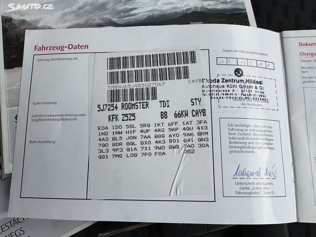 ModelŠkoda RoomsterTyp1,6TDI 66kW STYLE SERVISKA